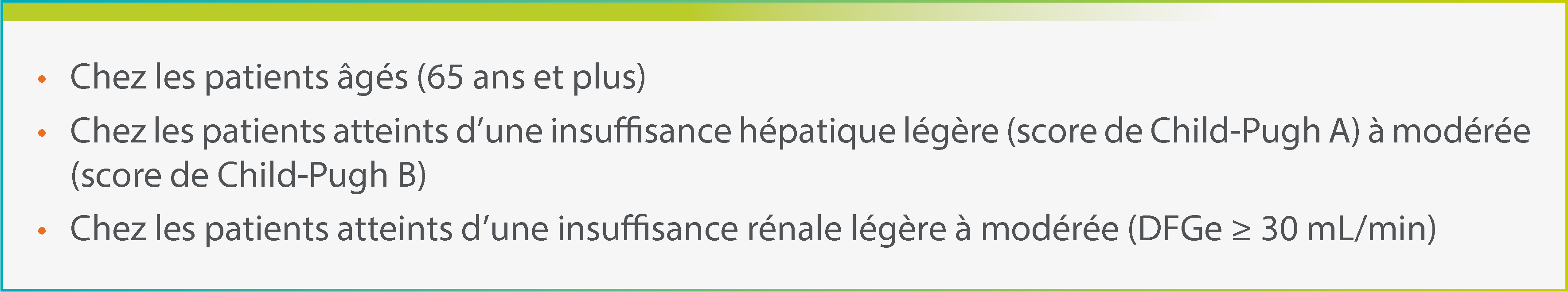 Pas d’adaptation posologique dans les cas suivants :